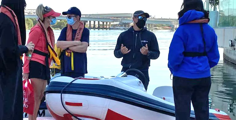 Begin your journey at Al Bandar Marina, where our friendly team welcomes you with smiles and excitement. After a short but essential safety and operational briefing, you'll learn how to handle your Rhino boat like a pro.